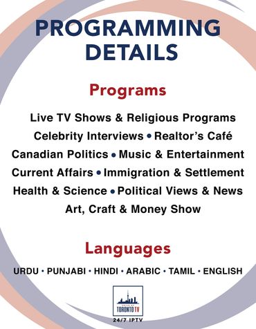 Voice of Toronto is in the business of ‘creating value’ for its advertisers with pride of quality planning, production and marketing. The team of Voice of Toronto TV passionately supports businesses and provides additional help with media coverage. In addition to long-term marketing support, we can be available for extra hours during new releases and other important events. Voice of Toronto TV can help you flourish your business and exposure in main stream Canadian and South Asian Communities.